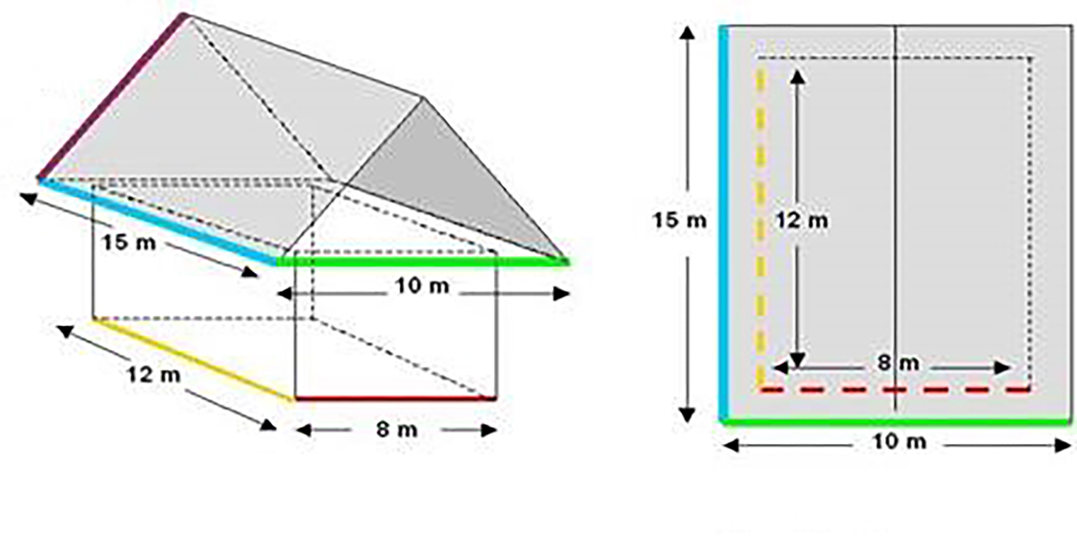 Maßgebend ist die Schattenfläche des Daches auf den Grund bei senkrechter Betrachtung (Grundriss des Hauses plus Dachüberstand). Ein Haus mit Satteldach oder Spitzdach beschattet den Grund genauso wie ein Flachdach. Die Form der Dachfläche ist demnach egal.